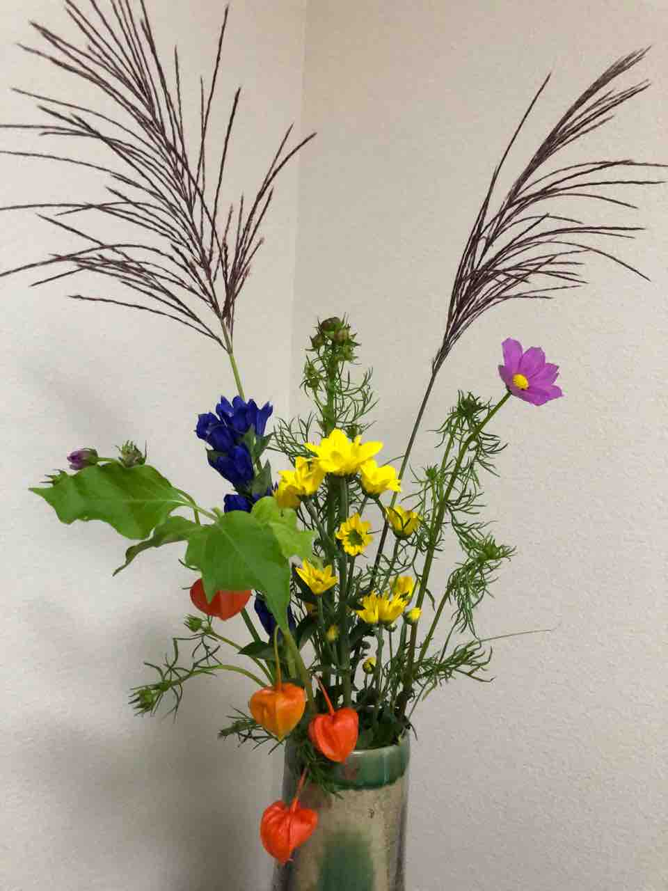 ススキ、リンドウ、ホウズキ等秋の