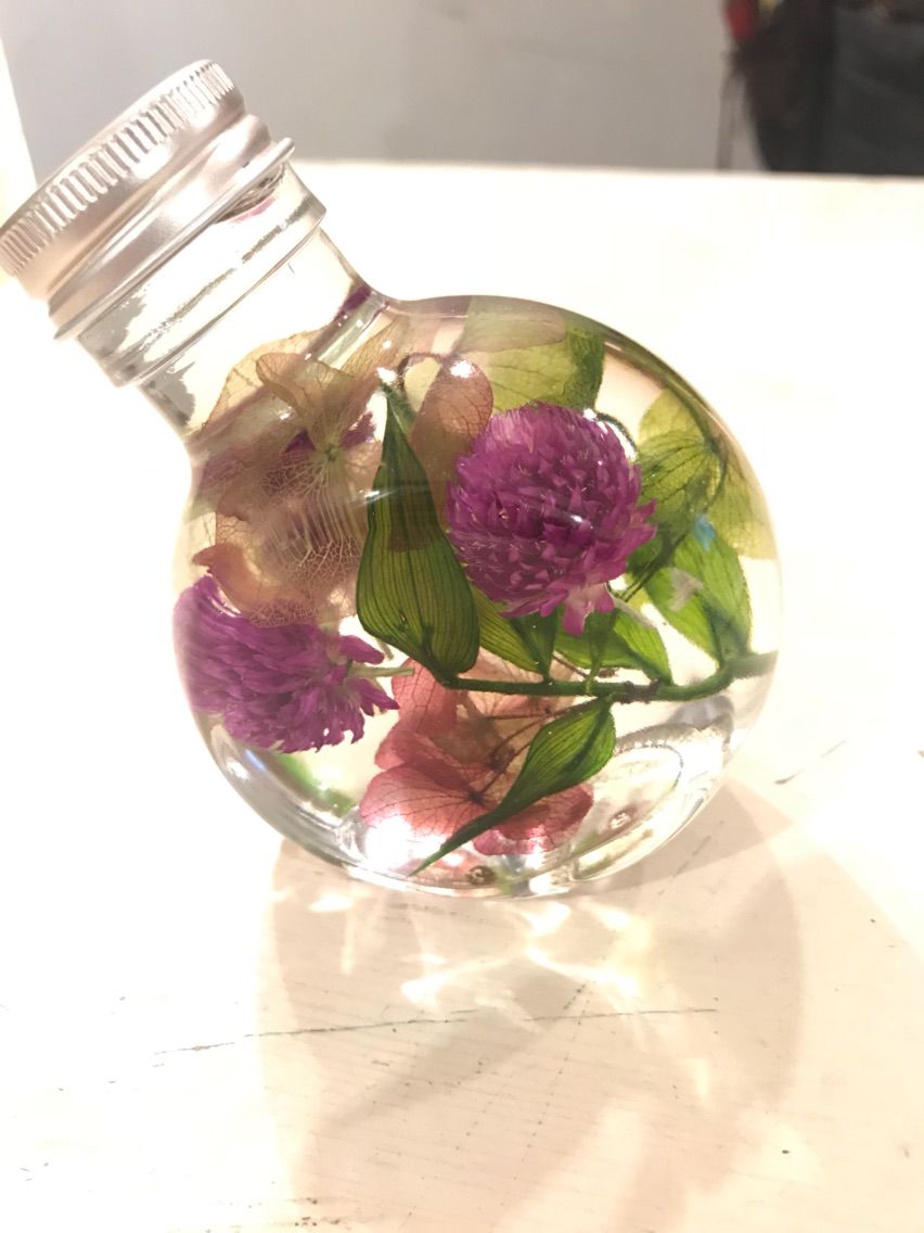 ハーバリウムとは植物標本のことを言います。本物の植物を使用した、押し花やブリザードフラワーが一般的ですが、特殊な液体で浸し、ボトルに入れたものが、今女子の間で人気です!!